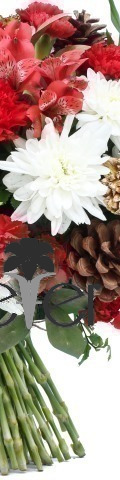Send a message of love, thanks, get well, or congratulations with the Rustic Charm Flower Bouquet. A stunning arrangement for special occasions, it includes a vibrant display of red and white blooms. With 4 red carnations, red spray carnations, 5 white chrysanthemums, and green chrysanthemums, this handtied bouquet guarantees to impress. Perfect for Mother's Day and Corporate Events, it is a bunch of natural beauty.